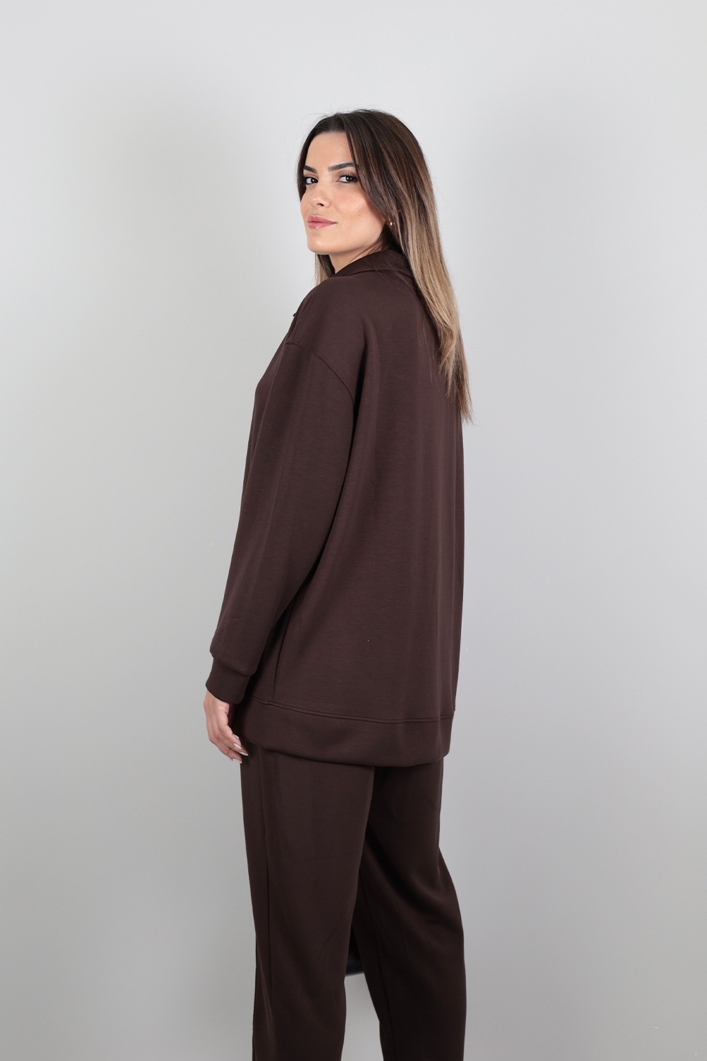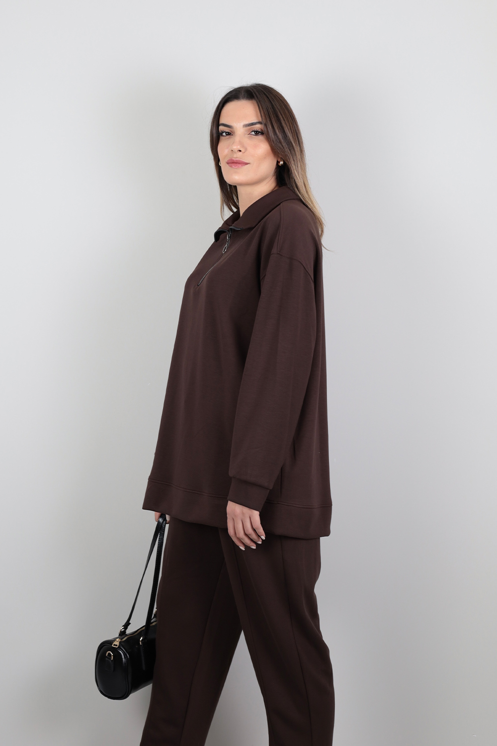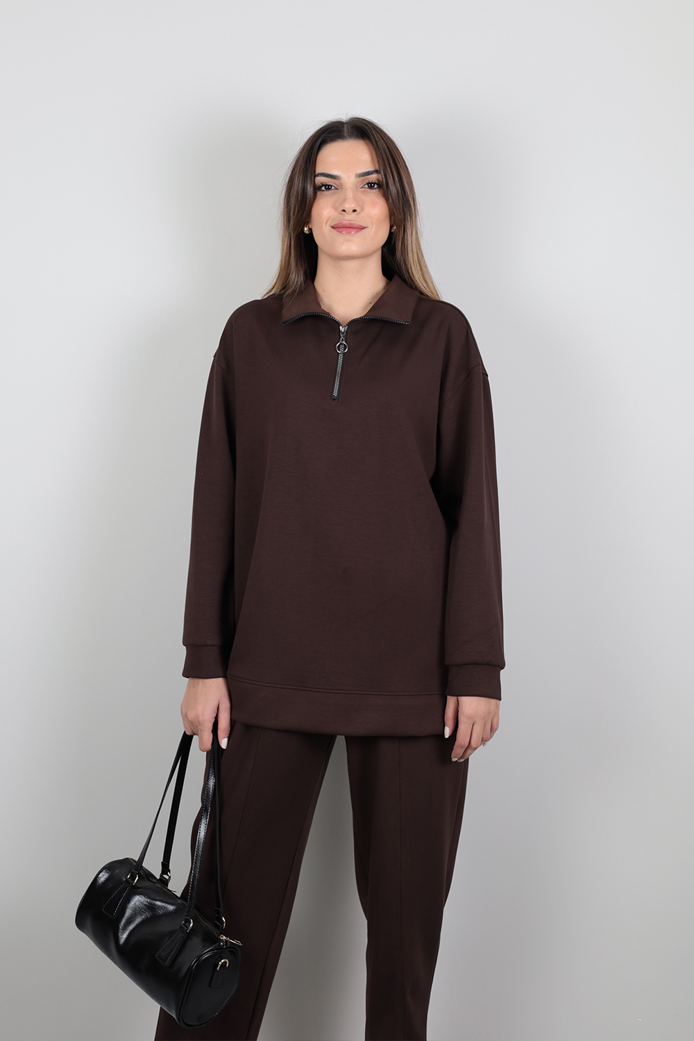 Yarım Fermuarlı Takım - Kahverengi